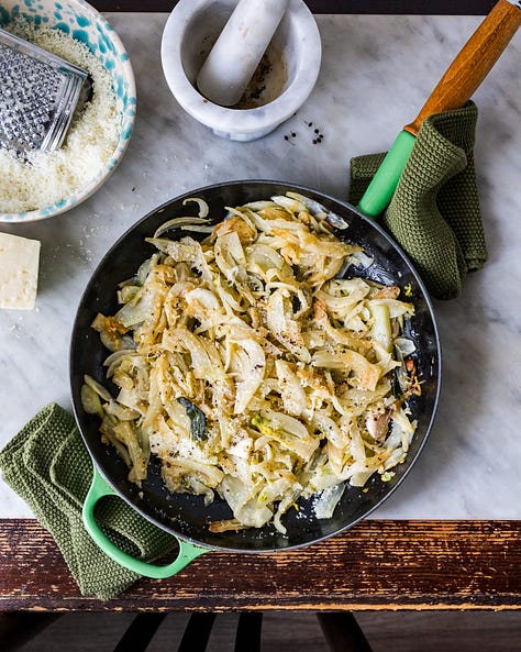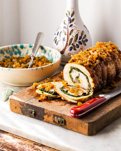 Everything’s waiting for you just behind the paywall, including the recipes for stuffed turkey breast roulade, fennels cacio e pepe, and a ricotta crumb cake with squash purée and chocolate chips.