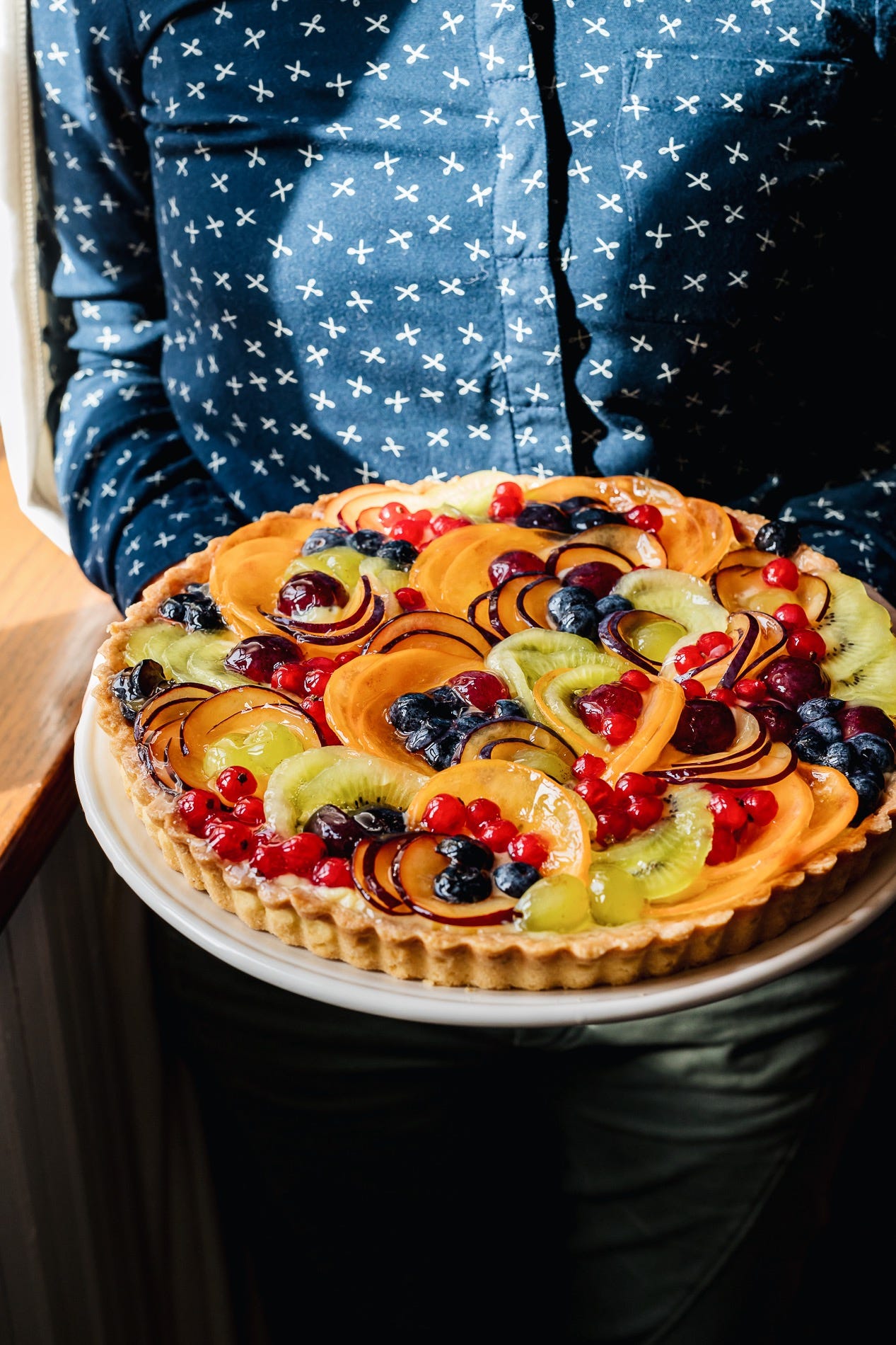 Sunday morning. Prepare the fresh fruit tart. It can be kept in the fridge for a day. Enjoy it!