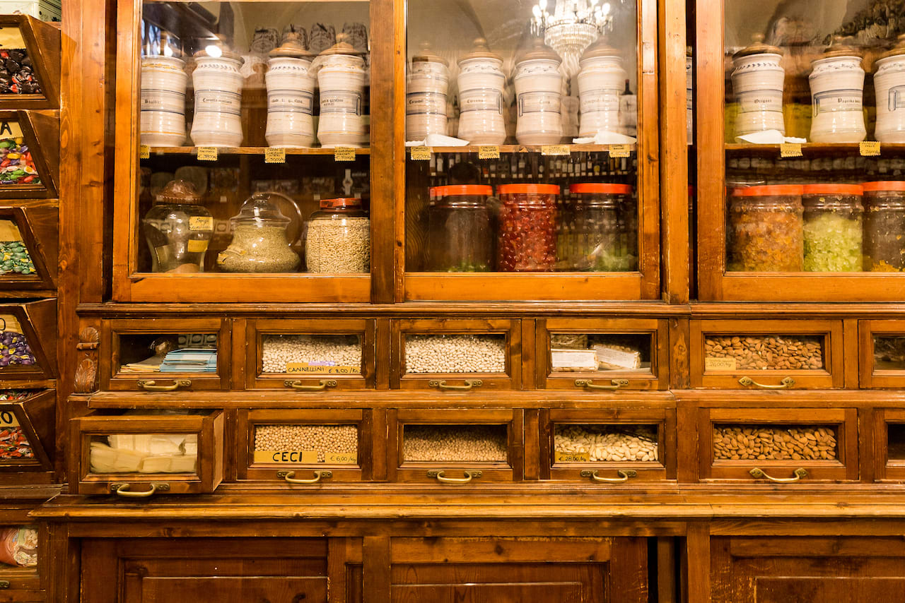 But let’s talk a bit more about Manganelli. Established in 1879, this is the shop to buy Sienese cakes and cookies, wines, liqueurs, candied fruit, bulk nuts, pasta, and regional specialities. You can also pick up a take-home kit to make the classic ricciarelli cookies, containing pre-measured ingredients and instructions. If you ask about how to make panforte, they will even provide a sheet of the special paper used to wrap the cake, for a very professional effect.