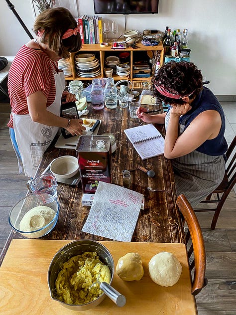 During the most intense days of photo shooting, we had the help of precious friends: Gaia, Simona and Emanuela came to the rescue more than once, from shaping orecchiette on a hot August day to kneading pasta frolla for a jam crostata, from scaling kilos of sardines to happily eating all the food with their families afterwards.