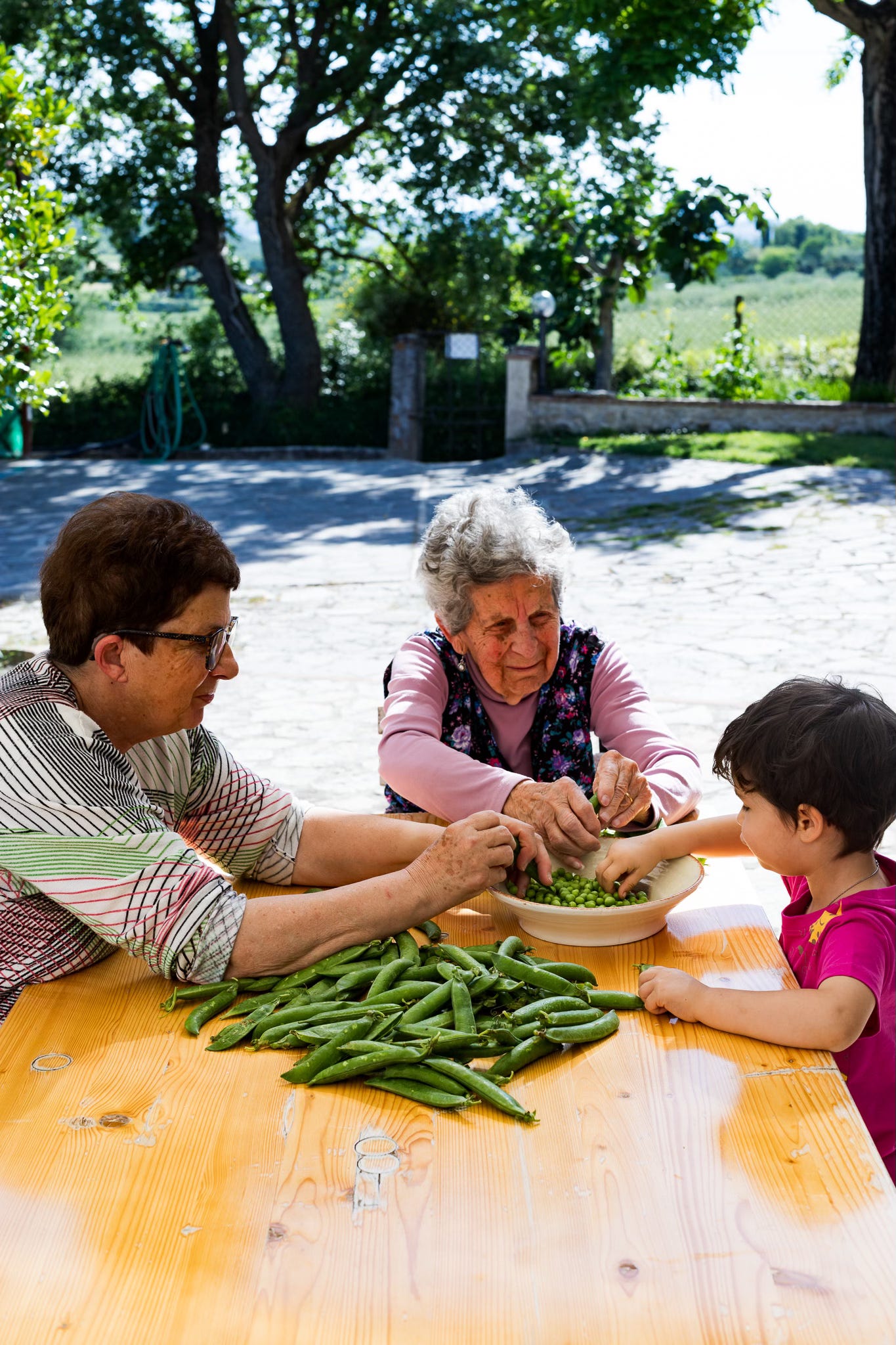 When I asked Livia what her favourite memory with nonna Marcella was, she replied without hesitation: pulire i carciofini con nonna, trimming baby artichokes together. I made sure they had those indelible moments together: trimming artichokes and green beans, shelling peas and broad beans.