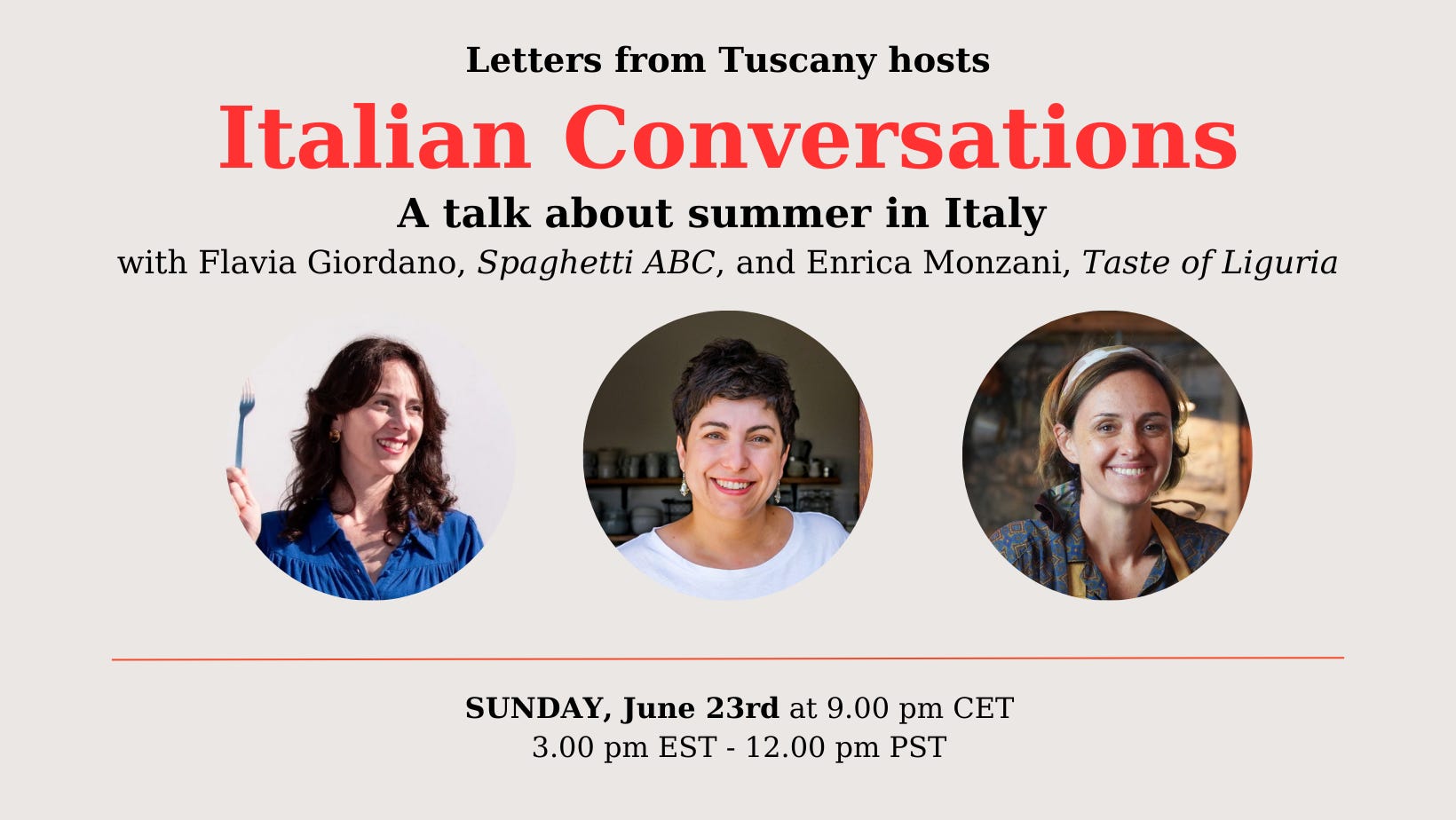 Let's meet for a live talk Sunday, June 23. We will discuss everything summer, from what to eat to where to go and what to see and how to get the best out of summer in Italy.