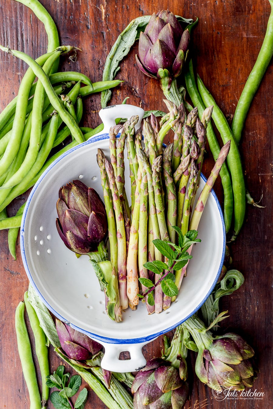 Today’s recipe sums up some of the best Tuscan Spring vegetables: artichokes, asparagus and fava beans.