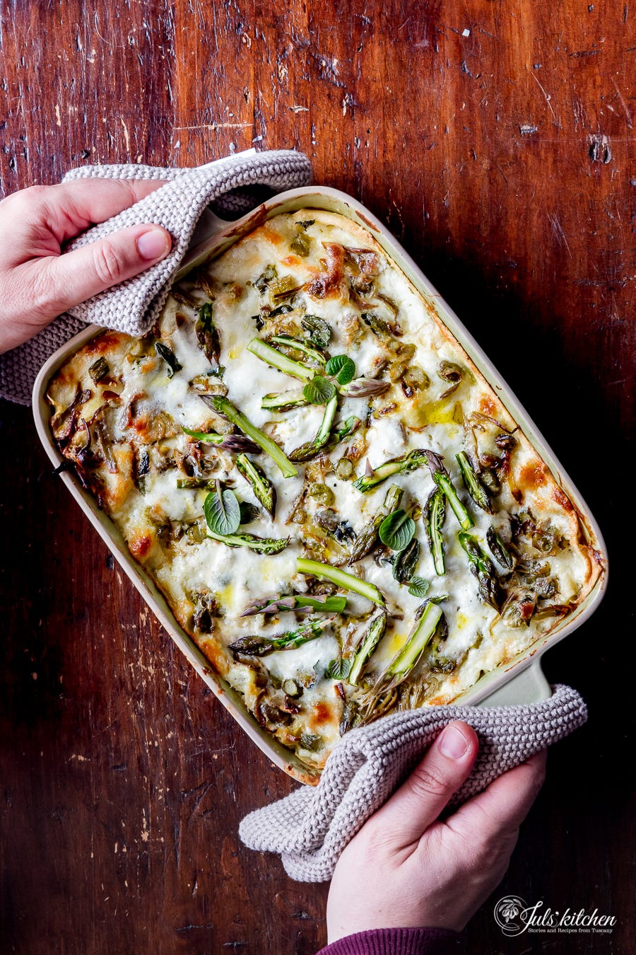 Every time I make fresh pasta, it feels like a day to celebrate. I used to make fresh pasta often during my cooking classes, now I leave the rituals of making fresh pasta to Sundays or family celebrations. The arrival of Spring seemed indeed like an event to celebrate after a long, dreary winter. So I made a tray of creamy, melting, verdant lasagne.