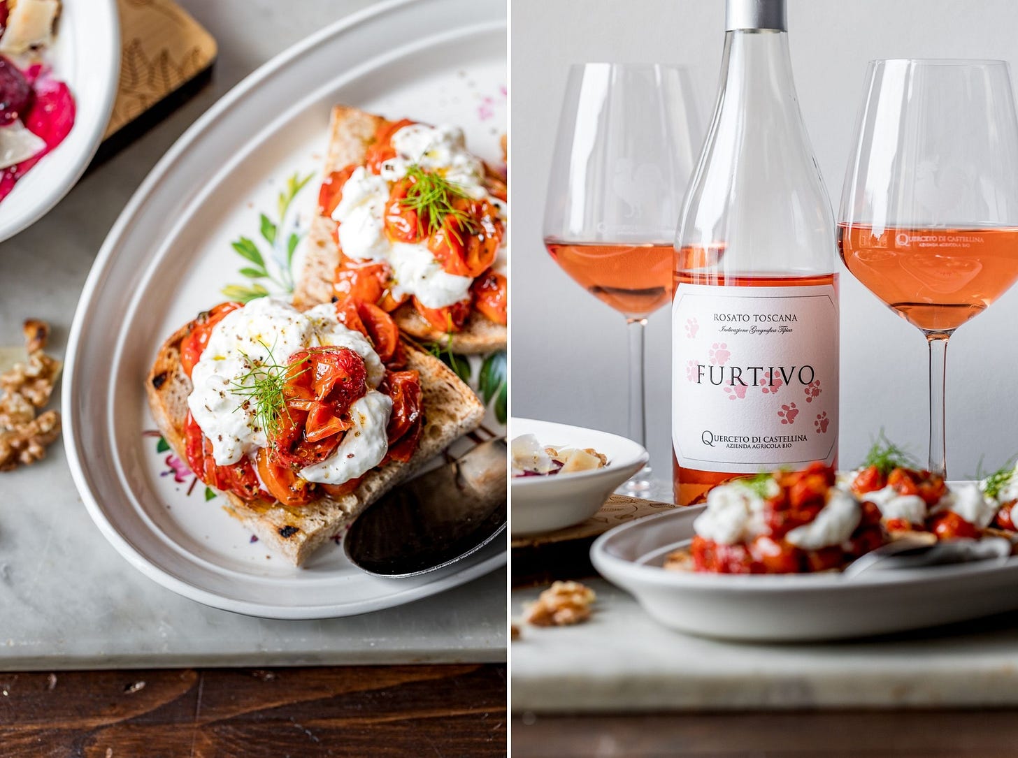 Last but not least, from next Monday, for 4 weeks, we’ll share in our subscription based newsletter a traditional Italian recipe, paired with one of Querceto’s wines. We’ll begin with a fresh Italian aperitivo recipe paired with Furtivo, their Igt Toscana Rosé.