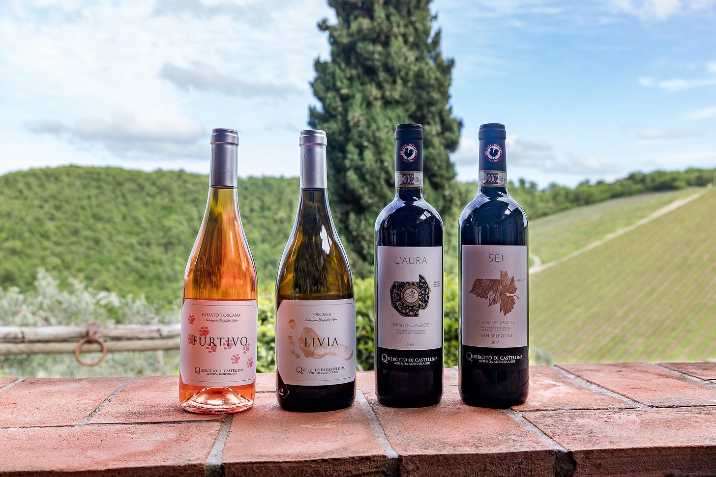 A 6 bottle box with: 1 Igt Toscana Rosé Furtivo 2020, 1 Igt Toscana Bianco Livia 2019, 2 Chianti Classico DOCG L’aura 2018, 2 Chianti Classico DOCG Gran Selezione Sei 2017. The cost is 135€ instead of 150€ (shipping non included) + you will have the chance to enjoy a special 45 minute zoom tasting with Mary and Jacopo from Il Querceto.
